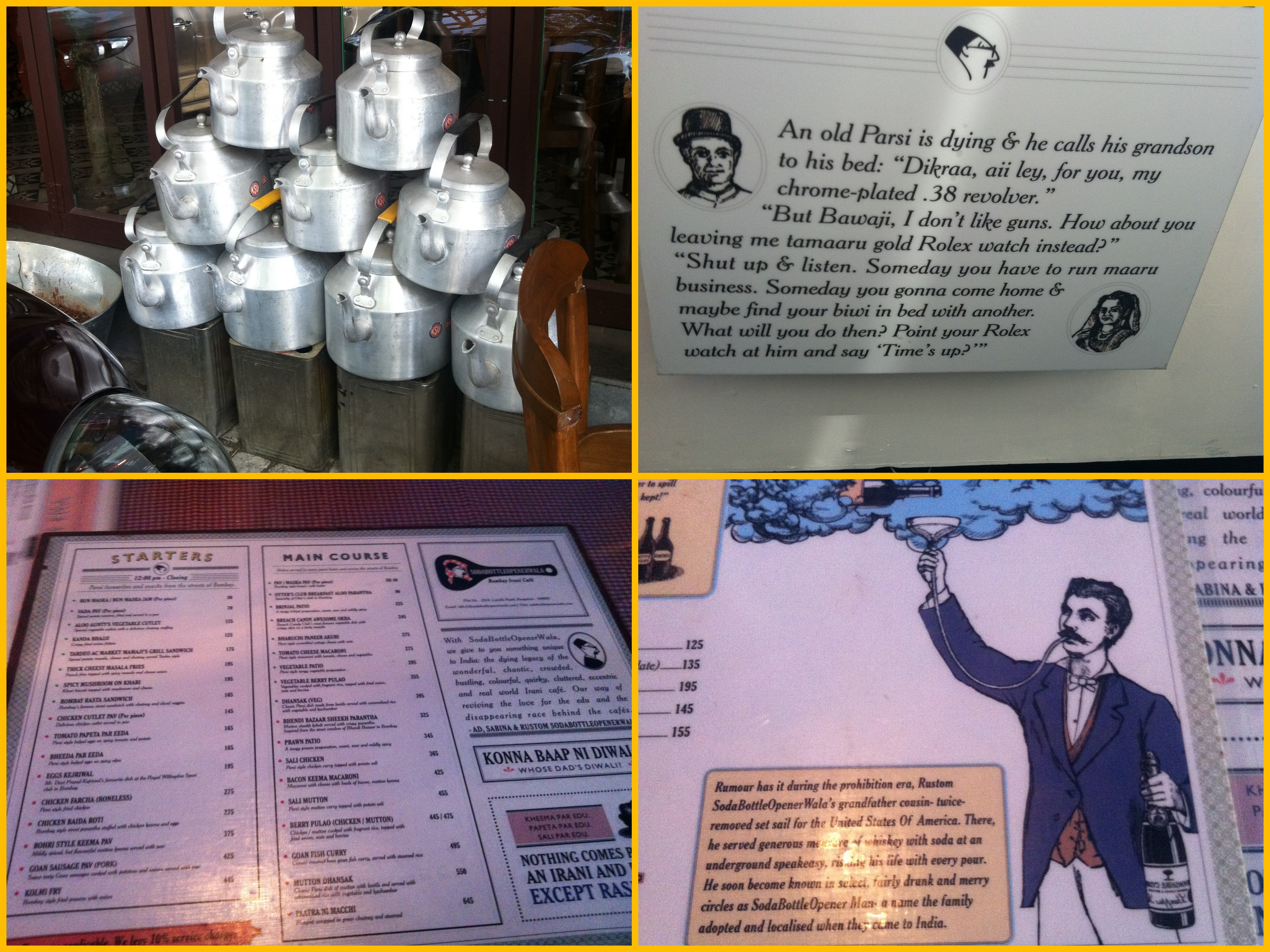 The moment we stepped in, it was evident that the place isn’t famous just for the sake of it. Some 12-15 tables placed close to each other, quirky interiors like hindalium kettles, those iron locks, mirrors mounted on a faded frame, a taxi meter, the black electricity switch and what not. Even the table cover was a small red checkered cloth. There were Parsi quotes and jokes written all over the menu which were fun to read.