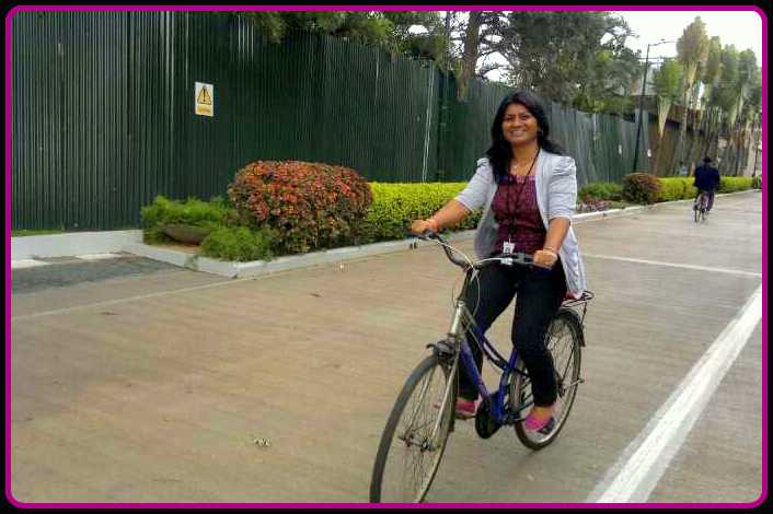I love cycling and the company where I worked for just four months had lots of cycles for employees to use from one part of the campus to another. This picture was taken by a peer and I love it for the fact that it got me back to cycling again after over a decade. I now cycle to Yoga few days a week.