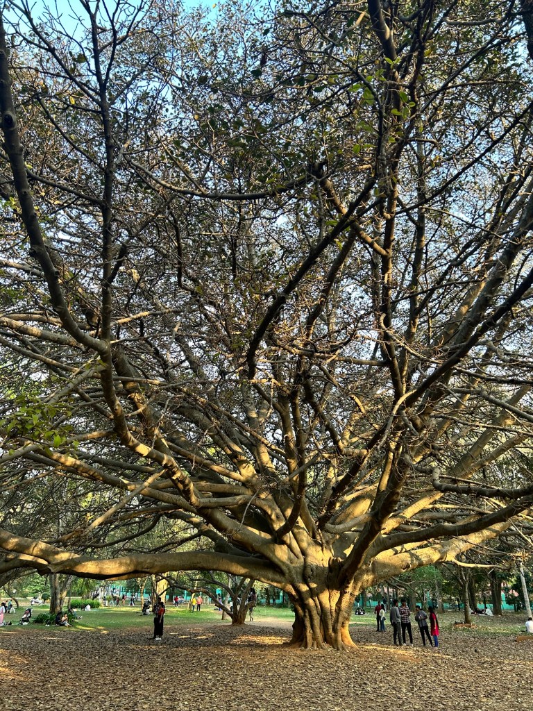 Last month, I went to watch a few tennis matches with VT on a weekend. He likes to park at a decent place where the car is safe and then we usually walk. There was a shortcut to reach the stadium and that cut through Bangalore’s biggest and famous Cubbon Park. This tree just got me to stop, appreciate its magnificence and click a shot. And that’s what I did for myself and you all.