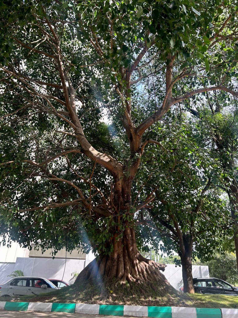 I spotted this Peepal tree outside of a building in Bangalore. Though I have posted my Peepal trees on this blog, this one’s trunk was so unique that at first I kept watching. Then I shared my amusement with my MIL and quickly grabbed a shot before we got going.