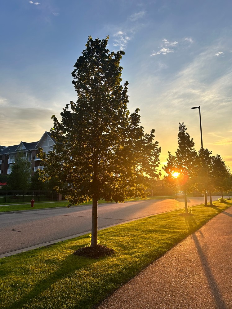 I stepped out for a walk and spotted this. The Sun was rising and away from home, I felt a familiar warmth. The one of Sun, trees and the road that leads us to where ever our destination is.